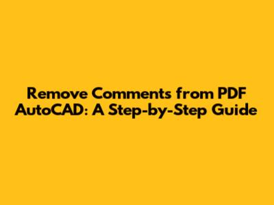 If you have multiple PDFs to clean, consider using a batch processing script or tool. AutoCAD has built-in scripting capabilities that allow you to automate repetitive tasks like removing comments. This can save you a ton of time and effort.