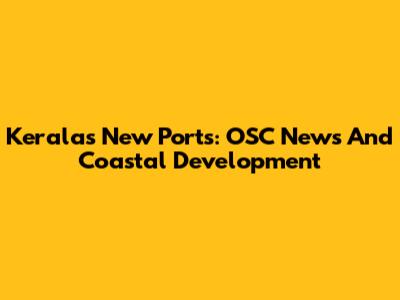 Kerala's New Ports: OSC News And Coastal Development