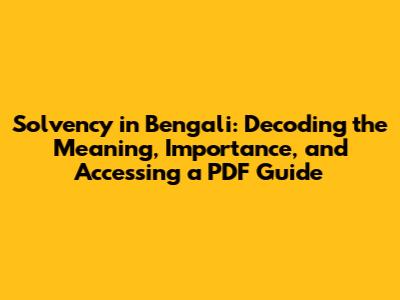 Finding a Solvency PDF Guide in Bengali