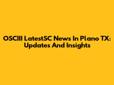 OSCIII LatestSC News In Plano TX: Updates And Insights