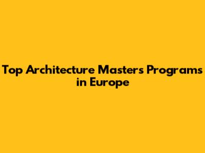 Top Architecture Masters Programs
