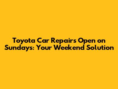 Why Sunday Toyota Repair is a Game Changer