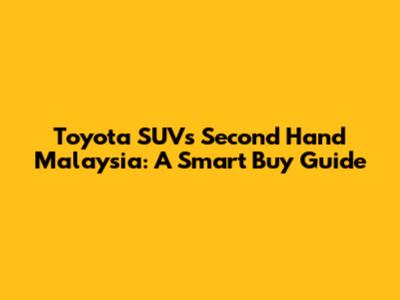 Hey guys, if you're in the market for a reliable and versatile SUV in Malaysia, you've probably considered a Toyota. They're known for their durability, fuel efficiency, and overall value. Buying second-hand is a great way to get a premium SUV without the hefty price tag of a brand-new one. But where do you start? Don't worry, this guide will walk you through everything you need to know about buying a second-hand Toyota SUV in Malaysia. We'll cover everything from popular models to what to look out for when inspecting a used car. So, let's dive in and find you the perfect ride!