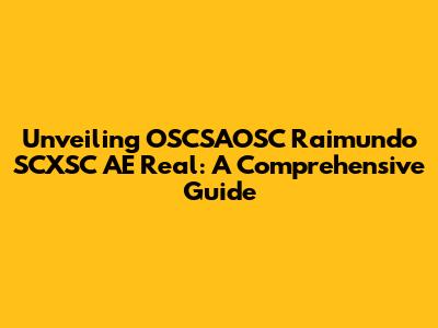 Unveiling OSCSAOSC Raimundo SCXSC AE Real: A Comprehensive Guide