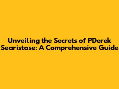 Hey guys! Ever heard of PDerek Searistase? If you're scratching your head, don't worry, you're not alone. This guide is designed to pull back the curtain and give you a solid understanding of what it is all about. We're going to dive deep, explore its different facets, and hopefully, by the end, you'll be able to confidently say you're familiar with PDerek Searistase. So, buckle up, because we're about to embark on an adventure to unravel the mysteries behind this subject. The main focus is to clarify the term, covering its significance, history, and impact on modern trends. Whether you're a seasoned expert or just curious, this article will help you become well-versed in PDerek Searistase.