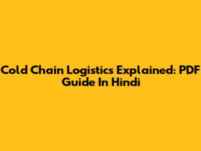 Cold Chain Logistics Explained: PDF Guide In Hindi